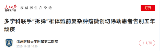 • 人民日报健康客户端:多学科联手“拆弹”椎体骶前复杂肿瘤微创切除助患者告别五年顽疾