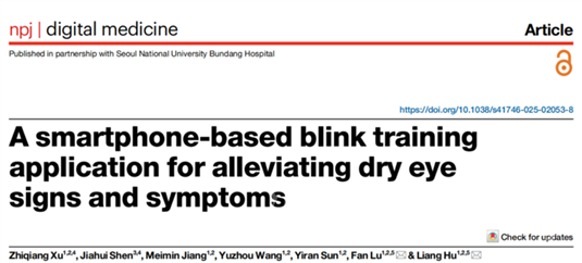 据悉,《数字医学》为中科院一区Top期刊,影响因子达15.1,研究成果的发表标志着该团队在干眼症数字治疗领域的研究获得国际学界认可。