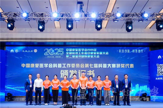 大会对中国康复医学会科普工作委员会第七届科普大赛获奖代表颁发证书。