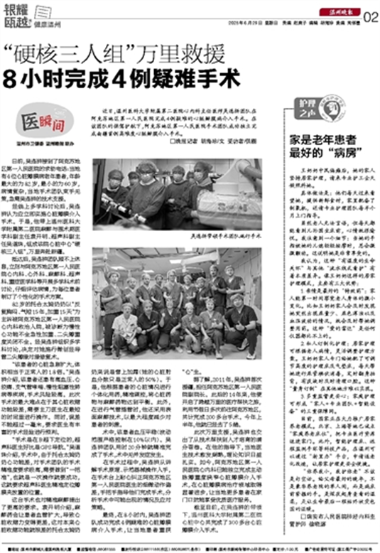 此次万里支援,吴连拼也交出了从技术帮扶到人才培育的满分答卷。在他的指导下,当地医生技术愈发娴熟,理论知识日益扎实。如今,阿克苏地区第一人民医院心内科已能独立完成主动脉瓣重度狭窄心脏瓣膜介入手术,在心脏瓣膜病治疗领域取得显著进步,让当地更多患者在家门口就能享受优质医疗服务。