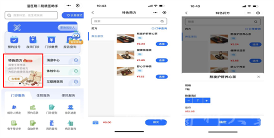 第二步:首页点击【互联网医院】,点击【特色处方】选择【养生茶饮】