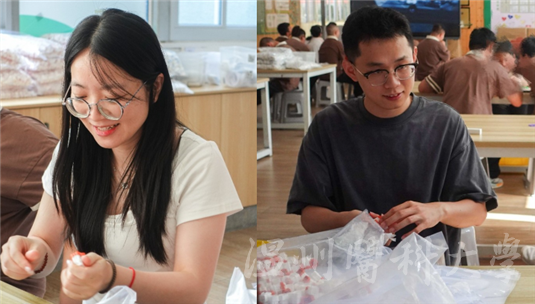 “快把这批零件包好,咱们今天还有好多任务呢!”张大哥的话让大家再次沉浸在加工零件的忙碌之中。残障朋友们手上动作不停,眉毛弯弯,眼中满含着对工作的热情。这是乐清市乐成街道特殊教育学校残疾人之家的日常场景。近日,温州医科大学第一临床医学院(信息与工程学院)“聆听新声”听障帮扶志愿服务团队走进这里,以“参与者”与“见证者”的双重身份,与残疾人之家的特殊朋友们携手共同劳动。
