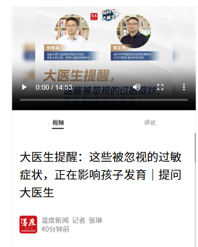 近年来,破解儿童过敏难题,在医学界取得了多项进展,尤其是在脱敏治疗、免疫疗法和生物制剂方面,为“敏宝”家庭带来了新的希望。温州医科大学附属第二医院、育英儿童医院在儿童过敏性疾病的诊治方面已深耕20余年,累计诊治尘螨过敏儿童4000多例,积累了丰富的临床经验。