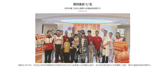 去年开始,为进一步促进东部优质医疗资源向西部流动,温阿两地升级推出“温心守护·共健阿坝”民族团结一家亲公益救助行动,以铸牢中华民族共同体意识为主线,全力打造温阿医疗协力支持、患病群众免费救治、爱心人士全力帮扶的医疗救助新模式。