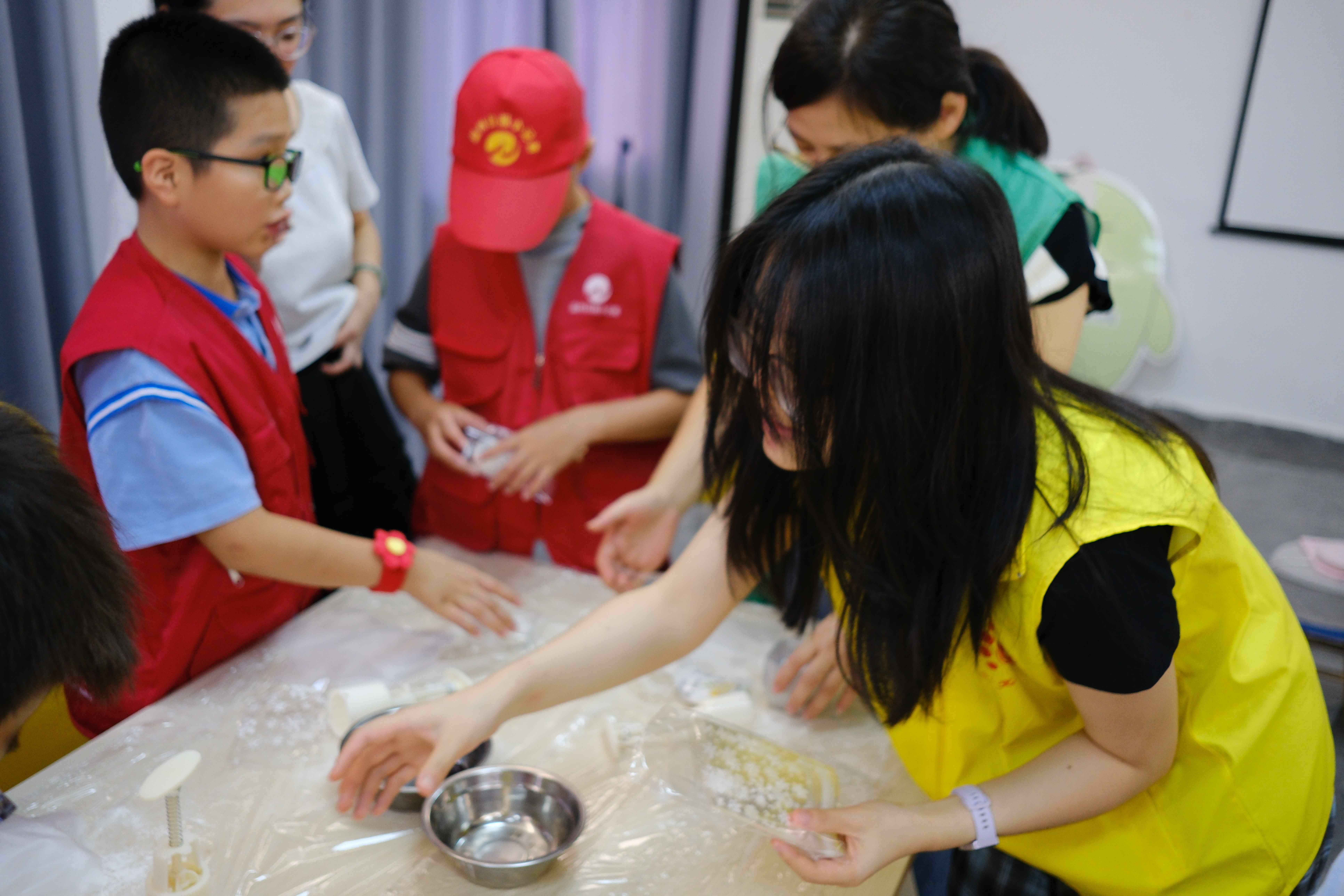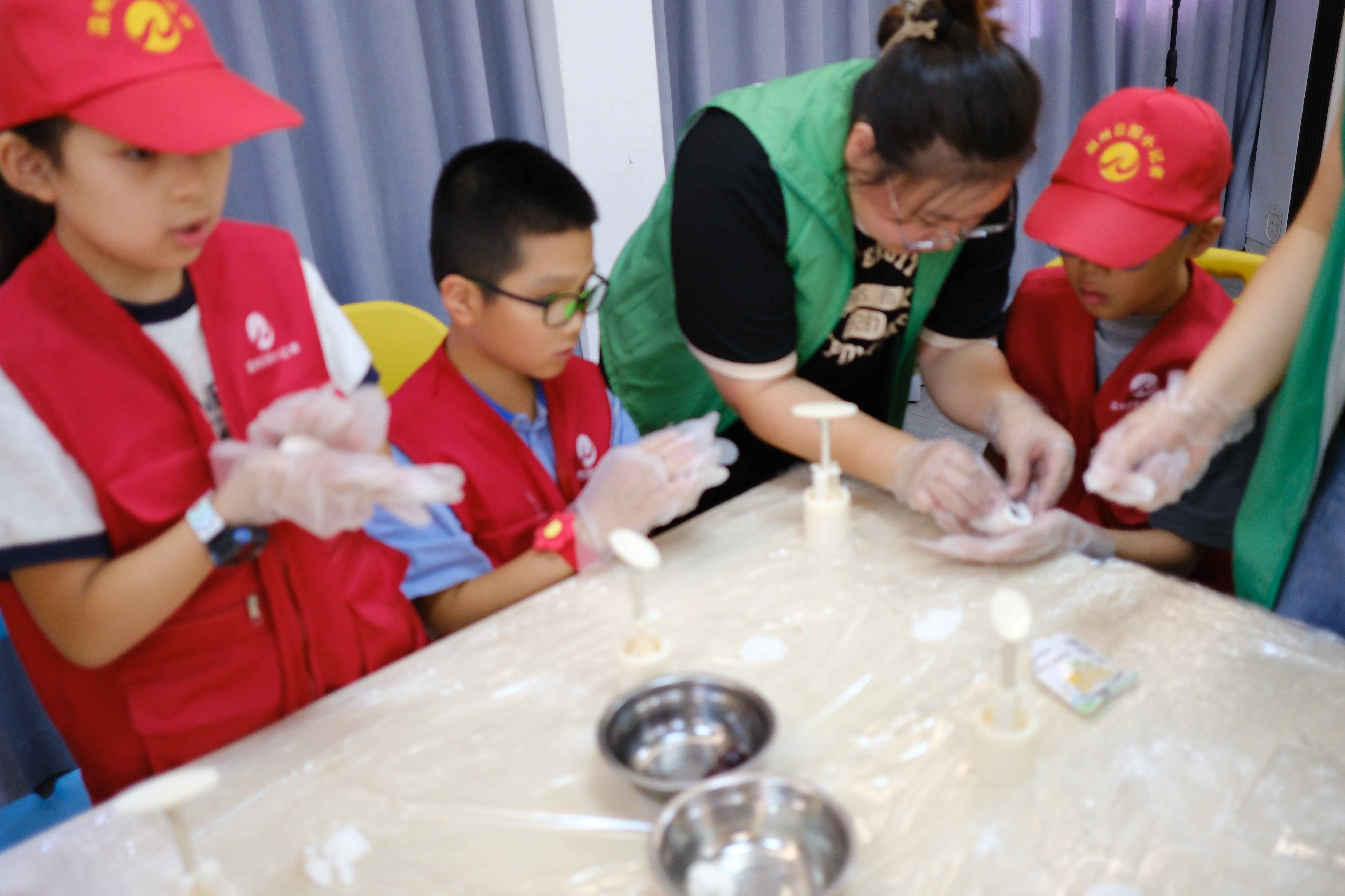 在残疾人之家义工老师和助残圆梦团队志愿者的指导下,小记者们纷纷化身 “小小糕点师”,制作冰皮月饼。小记者们将绿豆、豆沙、芋泥等馅料捏成圆球裹进冰皮里,在用模具轻轻一压,随着“咔嚓”一声,印有各种精美花纹的冰皮月饼从模具中脱出。“你看我做的这个月饼,是不是很可爱!”“这个月饼送给你,祝你节日快乐,开开心心的。”小记者举着刚完成的作品,兴奋地向身边的人展示,还有的小记者将自己做好的月饼送给残疾人朋友,祝福他们中秋快乐。