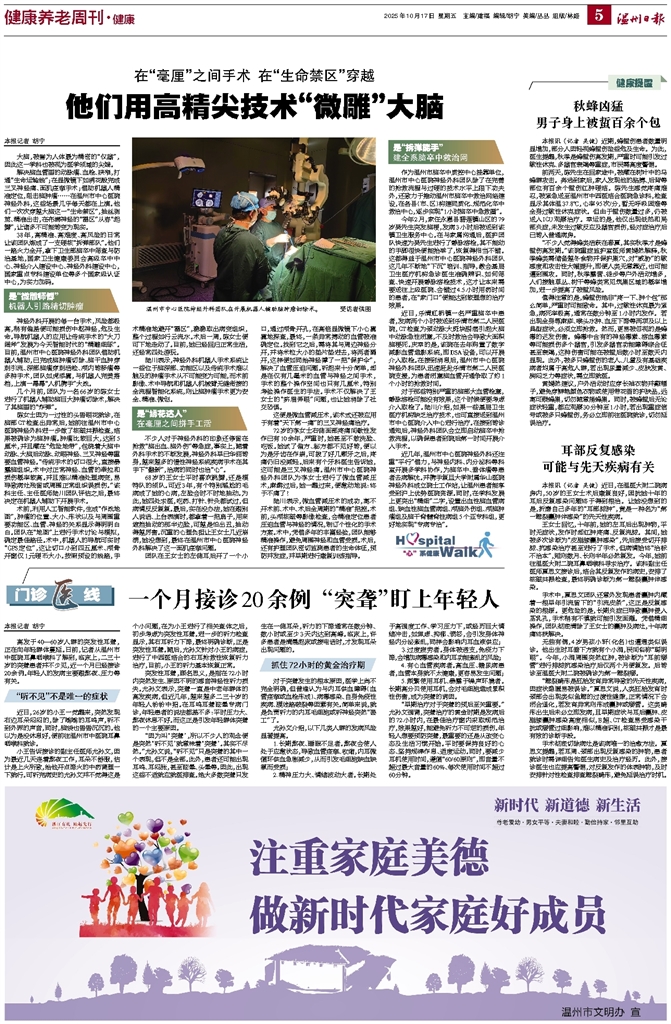 近日,在温医大附二院病房内,50岁的王女士术后康复良好,困扰她十年的耳后反复感染问题终于得到根治。让她没想到的是,折磨自己多年的“耳部脓肿”,竟是一种名为“第一鳃裂囊肿伴感染”的先天性疾病。