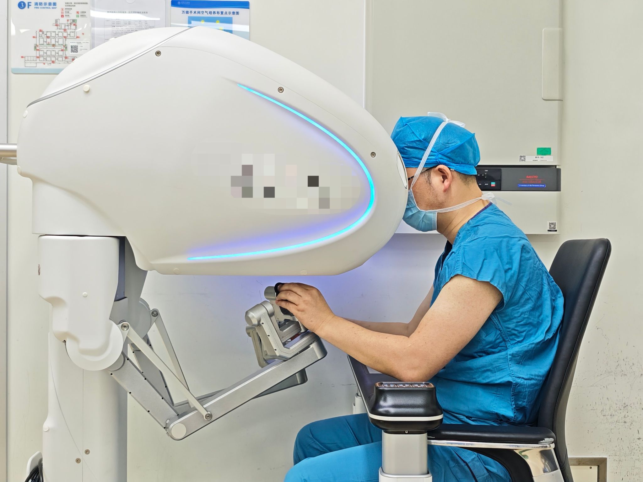 主刀医生坐在手术室的角落中,精准操作手术机器人,充分利用机械臂可以在腹腔内灵活摆动、自由穿行的特点,清晰辨认分离膜结构,在狭窄的食管裂孔里精准地缝合固定。董千铜表示,机器人手术还带来了外科操作模式的变革:主刀医生无需站在手术台旁,而是通过远程操控机械臂完成手术,不仅减轻了医生的体力负担,也为远程医疗提供了技术基础。