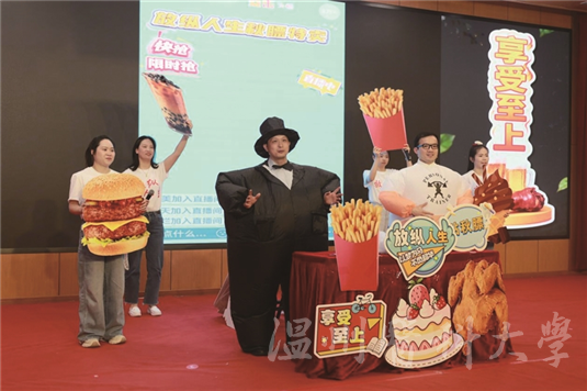 “冰淇淋200大卡热量,为血管添堵做贡献”“每天一杯奶茶,助力胰腺罢工”“现在下单(脂肪套餐),赠送恐怖体检报告一份,超大套餐直接送ICU直通卡”……活动现场,这场以直播为形式的关于脂肪危害科普的情景喜剧收获阵阵笑声与掌声。