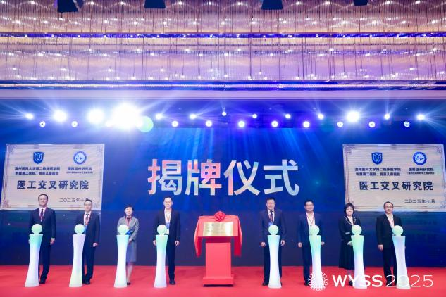 会议现场还举办了温州医科大学附属第二医院、育英儿童医院-国科温州研究院医工交叉研究院揭牌仪式。