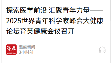 据悉,世界青年科学家峰会由中国科协、浙江省政府联合发起并共同主办,自2019年始已连续举办六届,是我国民间科技外交的重要平台之一。此次召开的2025世界青年科学家峰会大健康论坛育英健康会议是该峰会的组成部分,旨在为医学领域的青年科学家搭建学术交流平台。