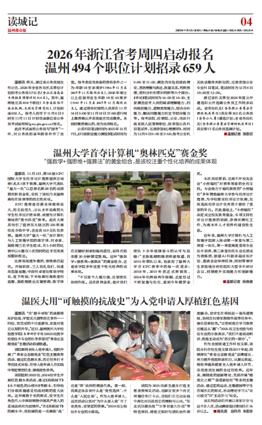 “在‘翻卡寻知’的桌前将淞沪会战、平型关大捷等历史事件一一归位,我完成的不只是游戏,更是对党史认知的升华。”近日,温州医科大学检验医学院(生命科学学院)2025级医学检验技术专业的小李参加完“青春立志跟党走”主题活动后感慨道。