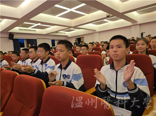 四位报告人的分享,如同一束束温暖的追光,照亮了报告厅的每一个角落。温州市第三中学的四名学生代表随后上台,分享了他们的“追光”感悟。他们结合自己的学习与生活,表示要以这些身边的榜样为明镜和前行的方向,从身边小事做起,向上向善,努力成长为能担当时代重任的新一代。