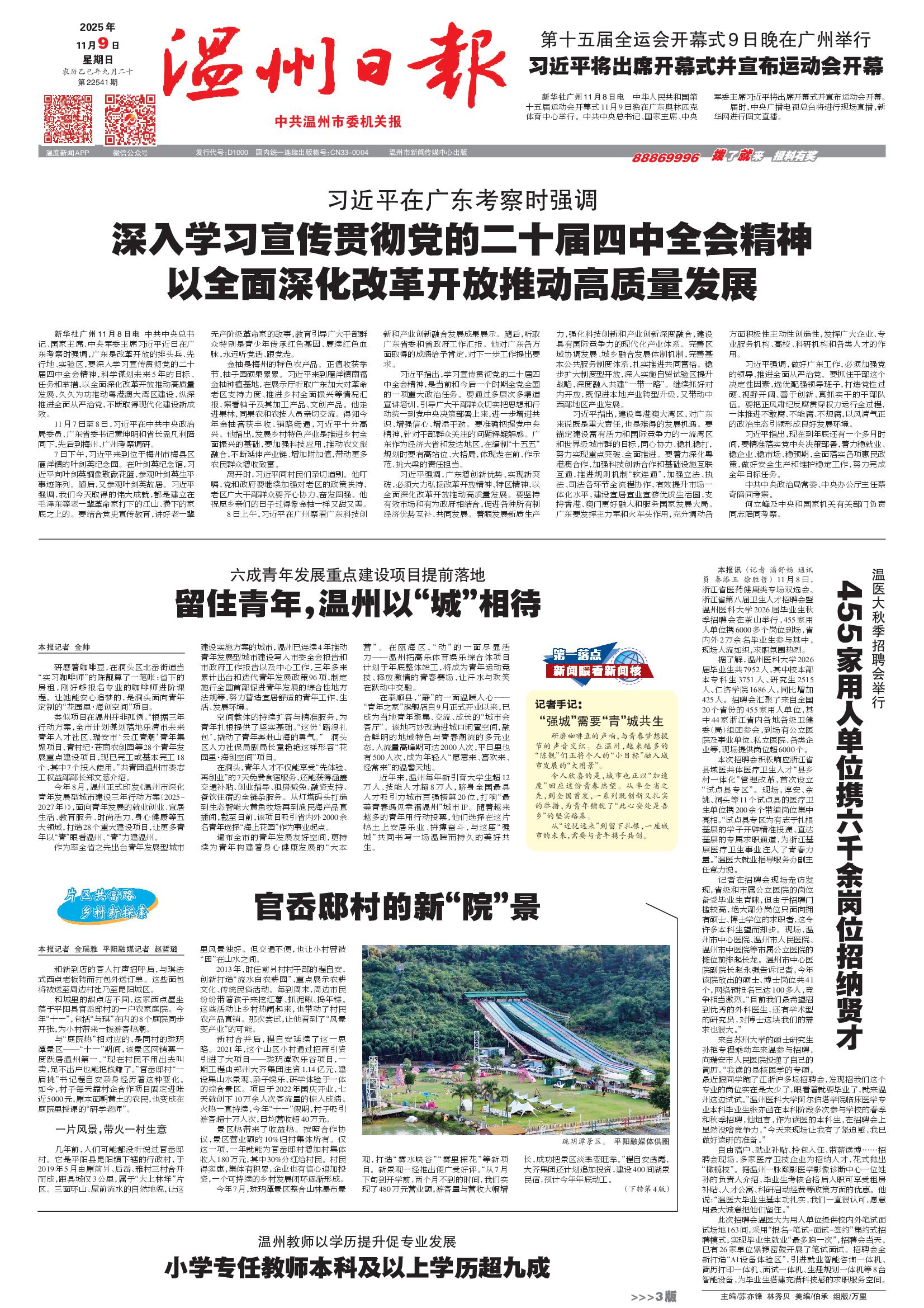 11月8日,浙江省医药健康类专场双选会、浙江省第八届卫生人才招聘会暨温州医科大学2026届毕业生秋季招聘会在茶山举行,455家用人单位携6000多个岗位到场,省内外2万余名毕业生参与其中,现场人流如织,求职氛围热烈。