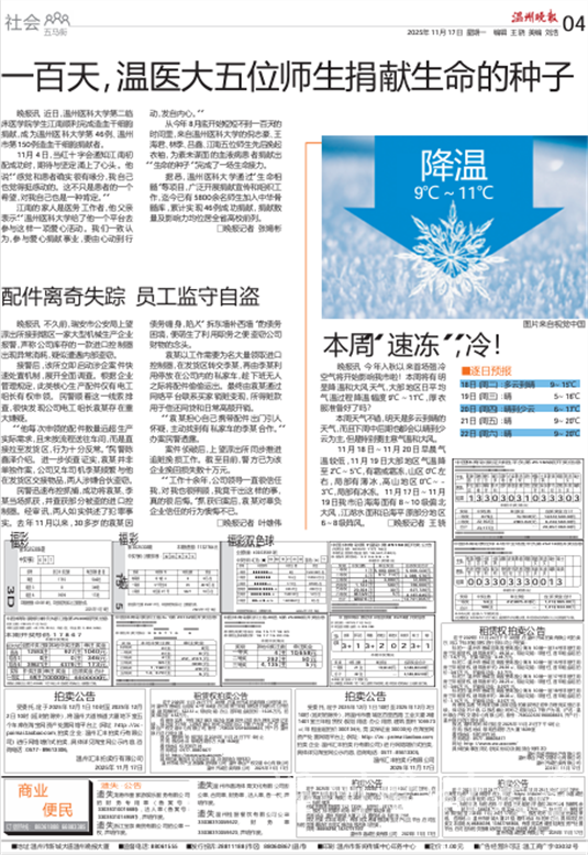 江南的家人是医务工作者,他父亲表示“:温州医科大学给了他一个平台去参与这样一项爱心活动。我们一致认为,参与爱心捐献事业,要由心动到行动,发自内心。”