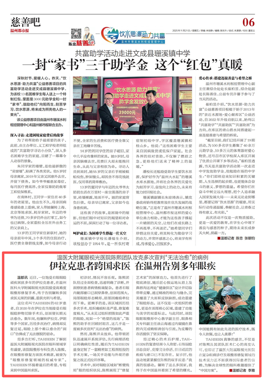 TAHSEEN真挚的感言,不仅是对陈熙及其团队医术仁心的高度认可,也印证了温医大附属眼视光医院在复杂眼病诊疗及眼整形修复领域的技术实力正不断获得国际患者的信赖,为解决全球性的眼科难题提供了“中国方案”。