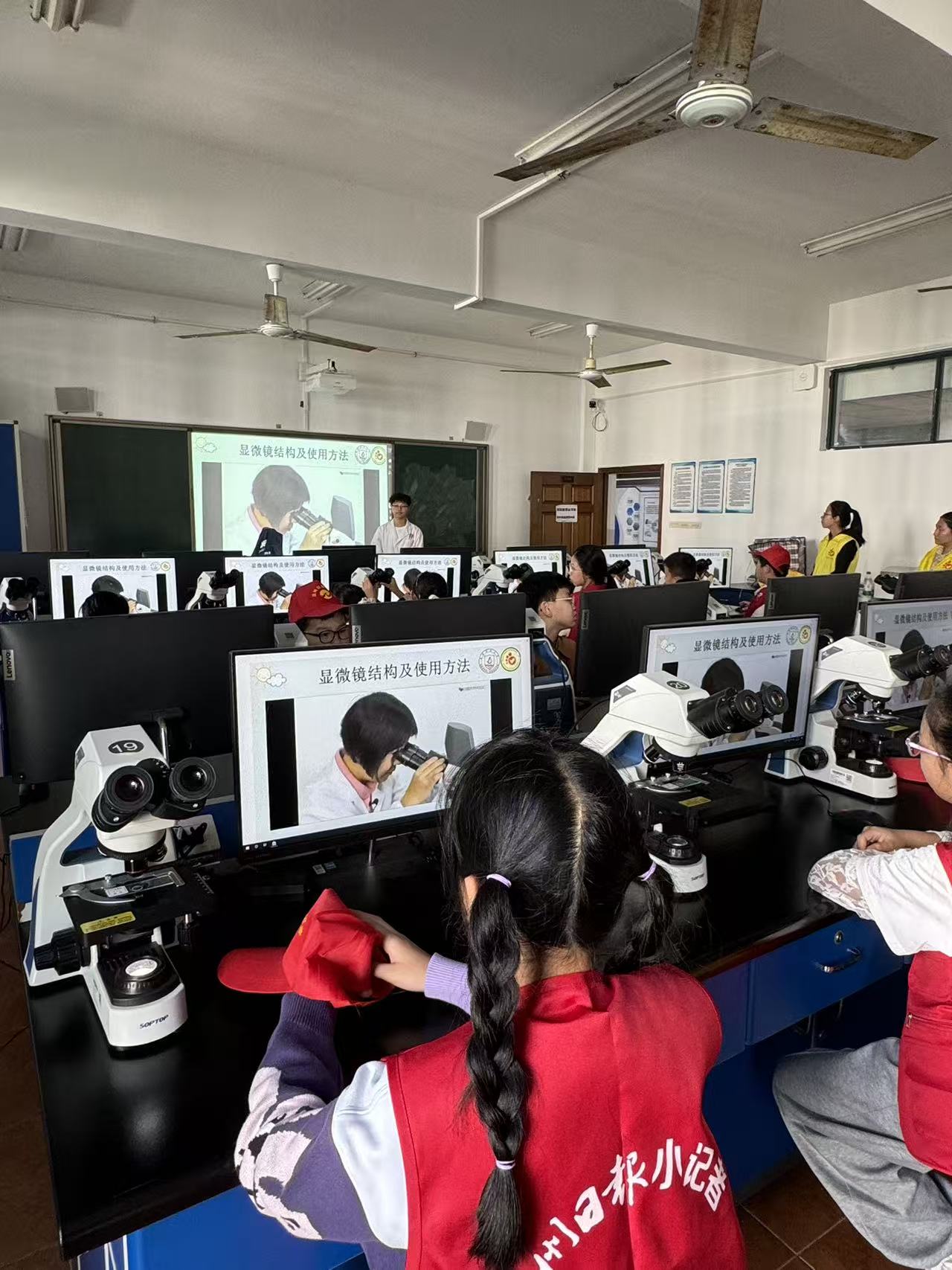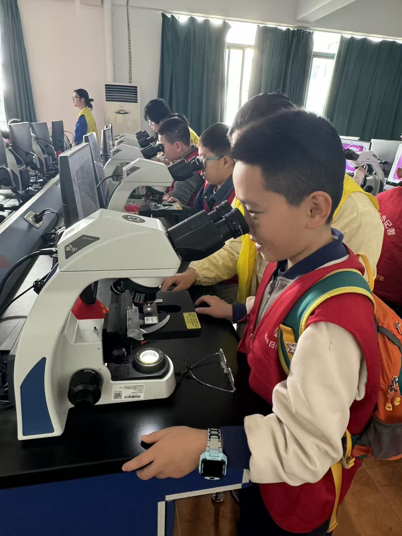 “人体最大的器官是皮肤,是保护我们的‘第一道防线’。”来到实验室,小记者们在志愿者康善淳的讲解下,学习了显微镜的结构和使用方法,观察了人体各组织切片形态。在课程中,康善淳还为小记者们介绍了“皮下组织的作用”“肌肉组织的功能”等内容。小记者们一边聆听一边记录,不时发出提问。随后,小记者在志愿者的帮助下用显微镜观察切片,小记者项炳钧在课后开心地说道:“皮肤原来有这么多的奥秘,观察组织切片真有意思!”