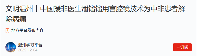 近日,一位深受妇科疾病困扰的中非患者,在温州医科大学附属第二医院援非医生潘镏镏的帮助下,通过宫腔镜手术成功解除了长达数年的痛苦。