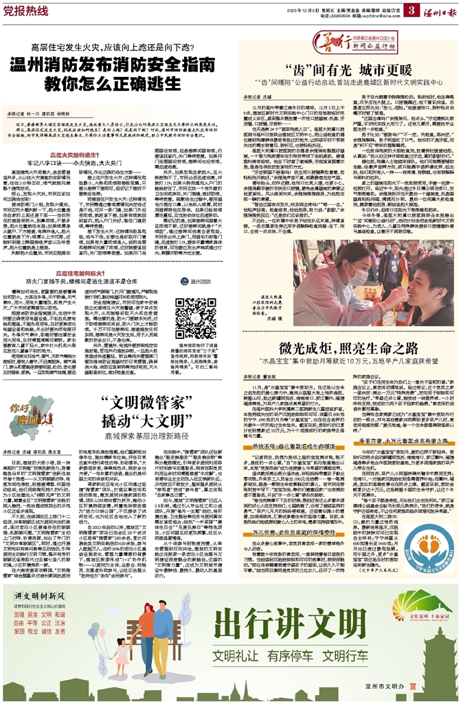 今年冬季,温医大附属口腔医院联合本报推出“‘齿’间暖阳公益行动”,活动计划走进各地新时代文明实践中心,为老人、儿童及特殊群体提供口腔健康科普与基础检查,让看牙不再被忽略。