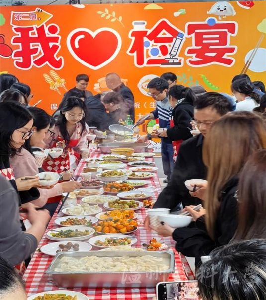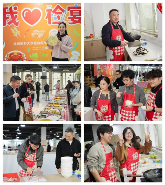 为厚植校园“家文化”根基,强化学生劳动教育,12月10日中午,温医大检验医学院(生命科学学院)在温医大茶山校区三食堂温情启幕第二届 “我爱检宴”美食分享暨劳动教育主题活动。学院教职工与本硕博学生代表欢聚一堂,师生以食为媒,将劳动教育与饮食文化深度融合,在协作烹调与倾心交流中,共赴一场充满烟火气的团圆之约。