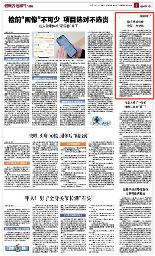 陶克表示,临床中类似因误信偏方导致会阴、肛周等私密部位烫伤的患者并不少见。这些部位皮肤比普通部位更脆弱,且生理环境特殊,烫伤后不仅易受大小便污染引发感染,走路、坐姿等日常活动还会牵拉创面,加重损伤,敷料固定难度也更高,治疗和康复周期远长于普通部位烫伤,严重时甚至危及生命。若为深度烫伤,愈合后还可能形成瘢痕挛缩,影响排便功能和下肢活动。