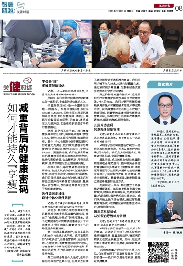 卢明东:我们将减重治疗视为一场持久战而非突击战。手术只是治疗的开端,而非终点。我们定义的减重成功,是患者获得长期、全面的健康改善。