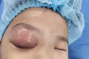 荣荣的麻烦要从一场感冒说起。感冒后没几天,他就出现了右侧眼睛和脸颊肿胀的情况,家人一开始以为是“上火”或普通感染,没太当回事。可随着时间推移,肿胀越来越严重,眼球都明显突出,连转动都费劲。当地医院做了眼眶CT,提示两侧鼻窦有炎症、右眼球突出,这才意识到问题不简单,赶紧带孩子转院求诊。