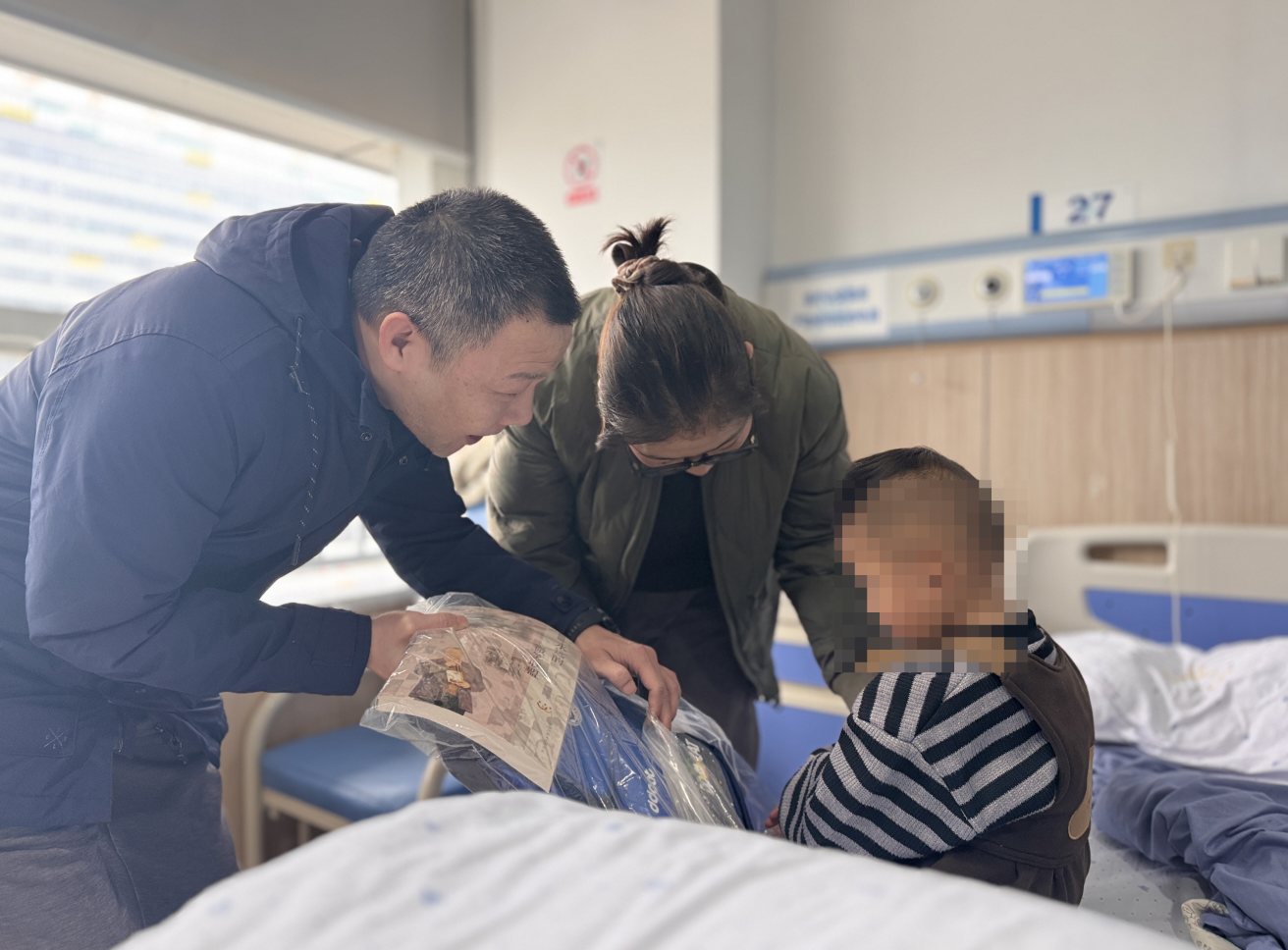 “你们好呀。”一句轻声的招呼,让原本安静的房间有了回应。慰问组将准备好的书包、文具盒一一递到孩子们手中,塑料包装在晨光与灯光交汇处泛起细碎的亮光。有人悄悄露出笑容,有人紧紧抱住礼物——笑容在这一刻,像小小的火花,在病房里悄悄点燃。