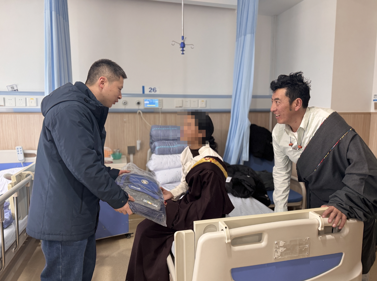第二天清晨,由“微笑联盟”、温州援藏工作组和温医大附属口腔医院工作人员组成的慰问组,轻手轻脚走进病房。
