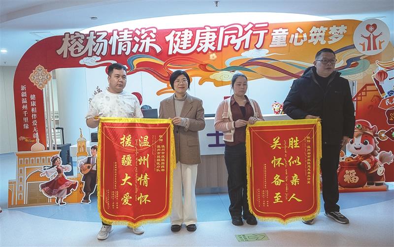 患儿家属向温州市援疆指挥部、温州都市报陈忠慈善工作室、温医大附二院儿童心血管科、童心筑梦团队及温州太平慈善功德会赠送锦旗。他们说:“温州的干部、医生和爱心人士给予我们无私帮助,不仅治好了孩子的病,还承担了所有费用,真是太感谢了。”